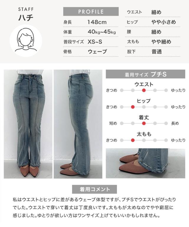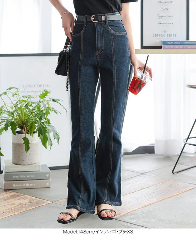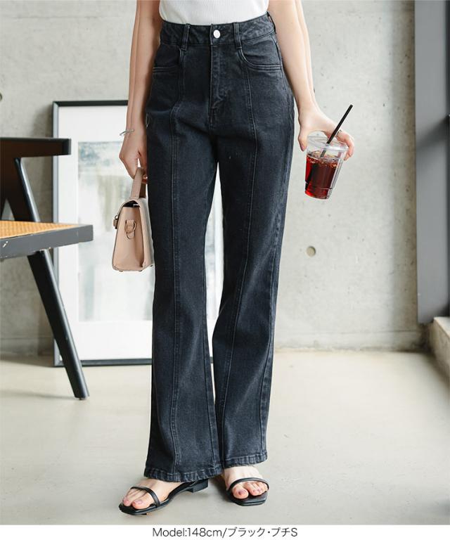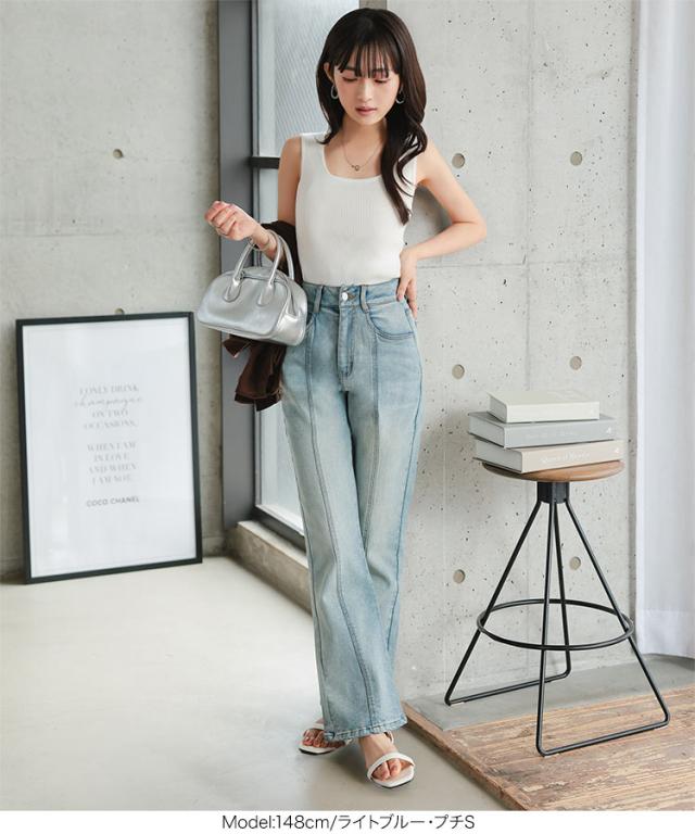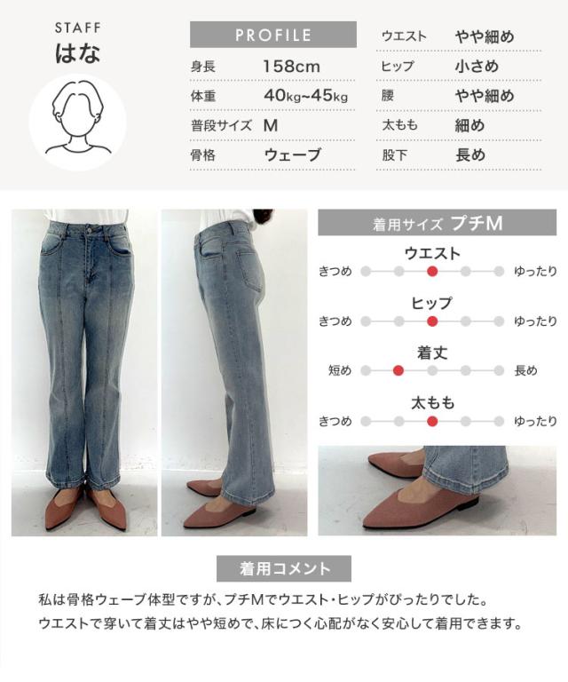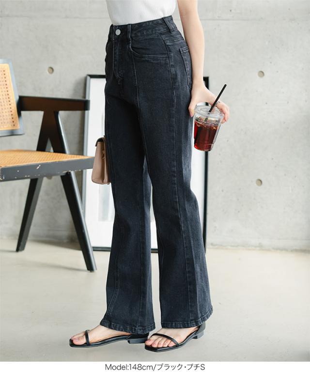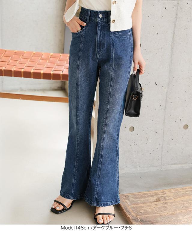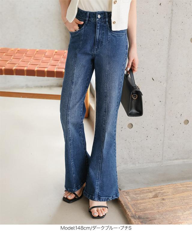 春新作 [ Petitle / プチレ ] センターシームフレアデニムパンツ M3690 入荷済 レディース レタスオリジナルサイズ 低身長 小柄 ボトムス カジュアル きれいめ 着回し デイリー 美脚 高見え 脚長 フレアパンツ おしゃれ