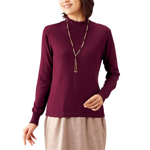 ウオッシャブルセーター トップス レディース 婦人 ミセス シニア 長袖シャツ ニット ワイン ブラック キャメル パープル ピンク オフホワイト ミントグリーン 洗える フリルネック カットソー シンプル フレアネック シニアファッション 50代 60代 70代 80代 レディース 婦人服 ミセス シニア 女性 母の日 母の日 ギフト プレゼント 敬老の日 ギフト プレゼント