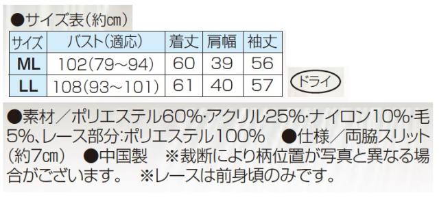 ●素材/ポリエステル60%・アクリル25%・ナイロン10%・毛5%、レース部分:ポリエステル100%