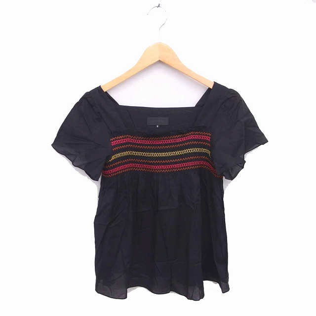 【中古】アンタイトル UNTITLED カットソー ブラウス スクエアネック 透け感 プルオーバー 半袖 2 黒 ブラック /TT26