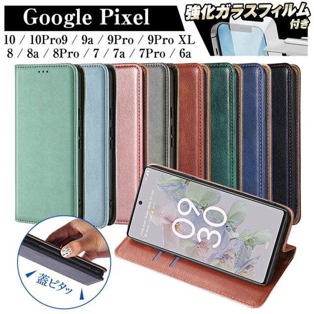 強化ガラスフィルム付 Google Pixel 10 10Pro 9a 9 9Pro XL 8a 8 Pro 7a 7 Pro 7 6a スマホケース Pixel 8 7 Pro 8a 7a 6a ピクセル8 8a 7 pro ピクセル7 7A 6A カバー 手帳 蓋ピタッ PUレザー 滑らか材質 グーグルピクセル tpu おしゃれ カード入れ ストラップ付 全面保護