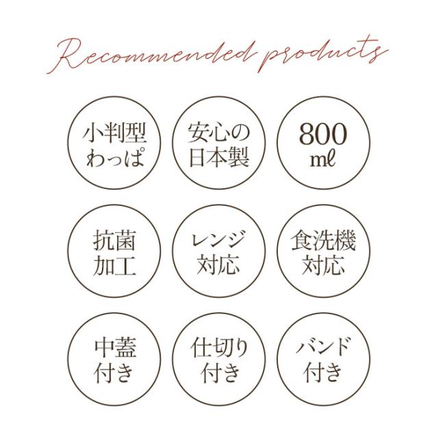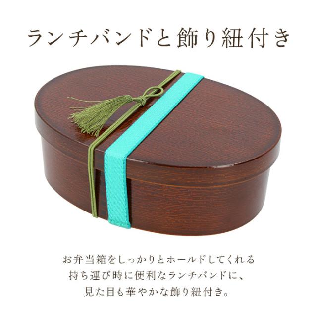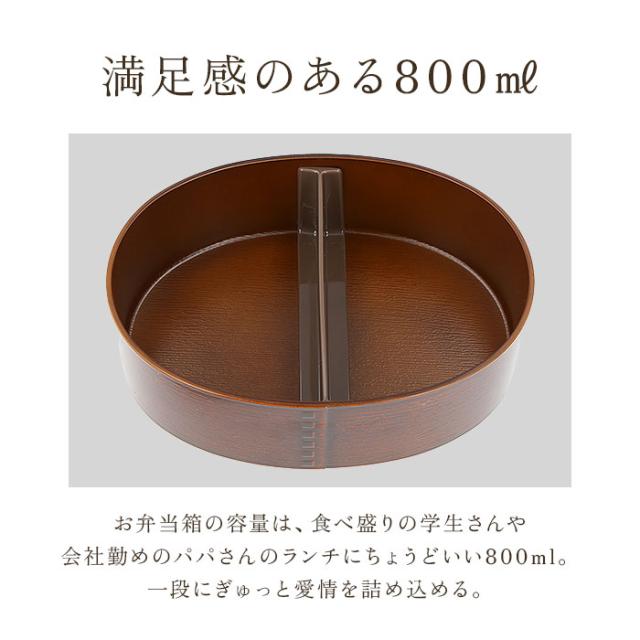 | 商品説明 | ・和の風合いがランチタイムを素敵に彩る「抗菌・わっぱ 一段ランチボックス(大)」が新登場。 ・ナチュラルな木目調仕上げに気持ちが安らぐ、昔懐かしいまるで曲げわっぱのような小判型のお弁当箱。 ・お弁当箱の容量は、食べ盛りの学生さんや会社勤めのパパさんのランチにちょうどいい約800ml。 ・容器にはシール式の中フタ付きで、少し汁気のあるおかずや果物を入れても汁こぼれの心配の少ない安心仕様。(※完全密封容器ではありませんので、汁気の多い食品を入れる場合は、持ち運びにご注意ください。) ・曲げわっぱ風のレトロな見た目なのに、家庭用電子レンジでの温めや、食器洗い洗浄機の使用もOK!お手入れがとってもラクチン。(※中フタは電子レンジや食器洗い乾燥機でご使用いただけません。取り外してご使用ください。) ・おかずとごはんを綺麗に分けて盛り付けできる、便利な仕切りが付属。 ・使い勝手のよいシンプルな小判型に、飽きのこない木目調デザインで、オフィスや学校でのランチタイムにぴったり。 ・お弁当箱をしっかりとホールドして持ち運び時に便利なランチバンドに、見た目も華やかな飾り紐付き。 ・ランチボックス本体内側は、細菌やカビの増殖を抑制する抗菌加工済みなので、真夏や梅雨時のお弁当の持ち運びも安心!(※抗菌加工は菌の増殖を抑える効果であり、全ての菌の殺菌効果はございません。) ・表面の塗装は、PET・ABS樹脂素材に、山中塗り(やまなかぬり)の塗装を施したもの。伝統ある漆器の生産地、石川県加賀市山中温泉地区に伝わる漆塗りの味わい深さが感じられる仕上がり。安心の日本製。 |