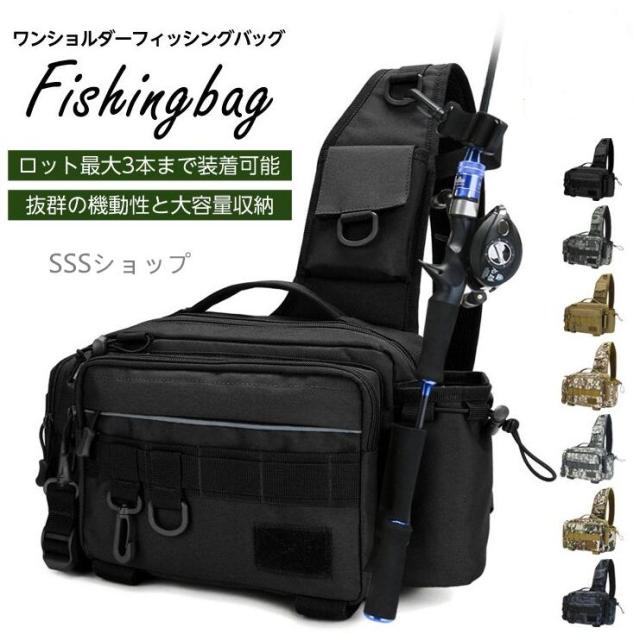 フィッシングバッグ 釣り カバン 釣りバッグ ランガンバッグ ショルダーバッグ ワンショルダー ロッドホルダー 迷彩 カモフラージュ
