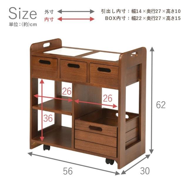 収納棚 キャスター付き 机 デスク 小さめ ロータイプ 食器棚 下 キッチンワゴン 棚付き 整理棚 大容量 天然木 木目 ダイニング