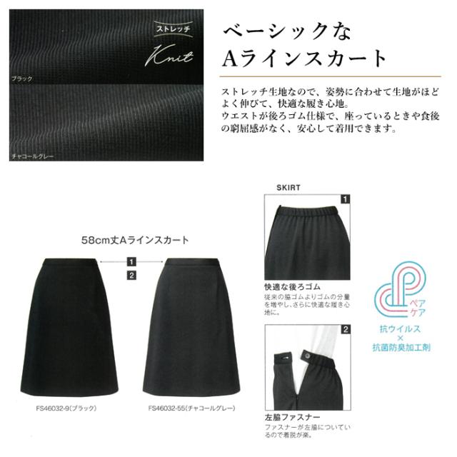 事務服 スカート レディース 制服 nuovo 秋冬 春 FOLK 後ゴム Aラインスカート【送料無料】黒 ブラック グレー 医療事務 受付 接客 冠婚葬祭 セレモニー クリニック オフィス スーツ ストレッチ 大きいサイズ おうちで洗える 抗菌 防臭 agesugi_sfa