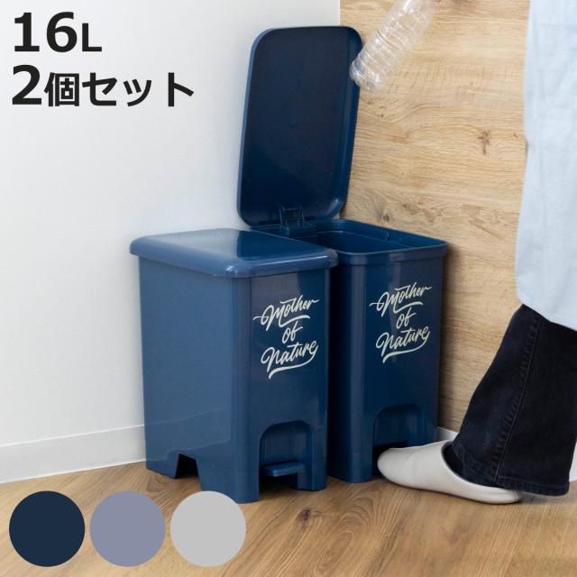 ゴミ箱 16L 同色2個セット ペダルペール アースカラー ( ごみ箱 16リットル 幅21.5 分別 ペダル式 ダストボックス ふた付き 蓋付き 踏み蓋 ペダル ペダル式ごみ箱 キッチン リビング シンプル おしゃれ )