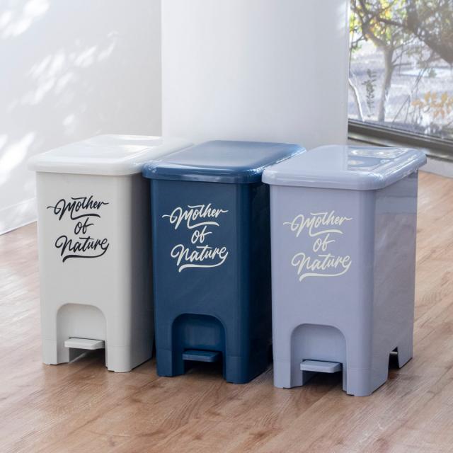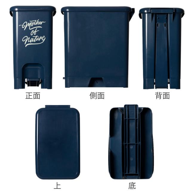 足で軽く踏むだけでサッと開く、ペダル式のゴミ箱です。手がふさがっていたり汚れていても、ふたを開けられるのでとても便利です。ワンポイントデザインが空間のアクセントとなり、インテリアに調和します。