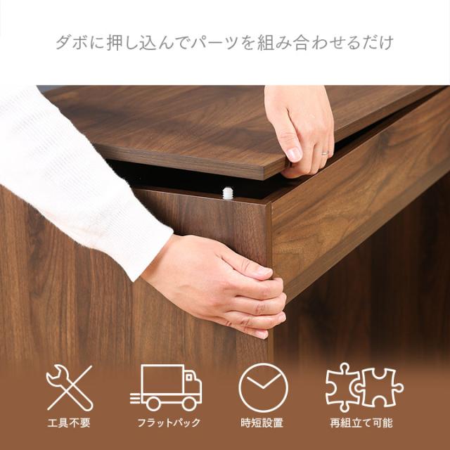 | ■工具不要の簡単組立。 ■お部屋に合わせて選べる2色展開 ■引き出し2杯付き ■左右2か所コード穴 |