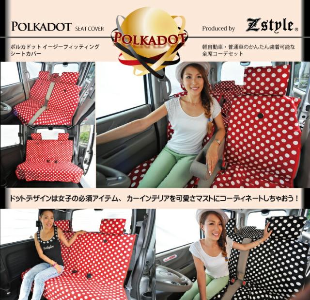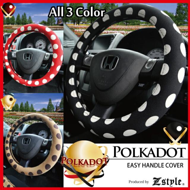 ハンドルカバー かわいい ドット柄 ポルカドットシリーズ ステアリングカバー ハンドル カバー 軽自動車ハンドルカバー 普通車ハンドルカバー 兼用 カワイイ 水玉が可愛い Z-style ZXHC-DBK ケアスター