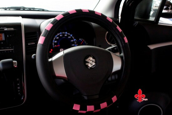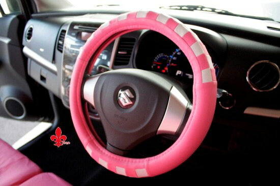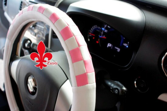 ハンドルカバー Z-style かわいい ピンクベース&ホワイトチェック ハンドル カバー 軽自動車ハンドルカバー 普通車ハンドルカバー かわいい ZXHC-CH07 ケアスター