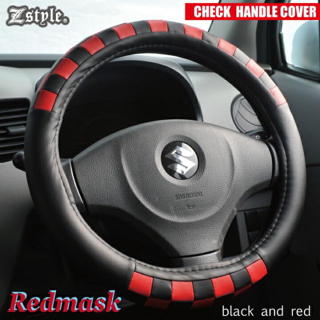 ハンドルカバー レッドマスク Sサイズ ブラック&レッド ステアリングカバー チェック柄ハンドル カバー 軽自動車ハンドルカバー 普通車ハンドルカバー ZXHC-CH05 ケアスター