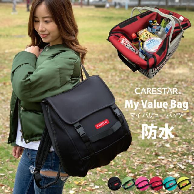 レジカゴ 防水 バッグ リュック 4wayマイバリューバッグ ブラック 車 買い物 トート レジかご エコバッグ 大容量 カナロア ウェットスーツ素材 かわいい アウトドア 洗える バッグ 釣り キャンプ 海水浴 プール CARESTAR