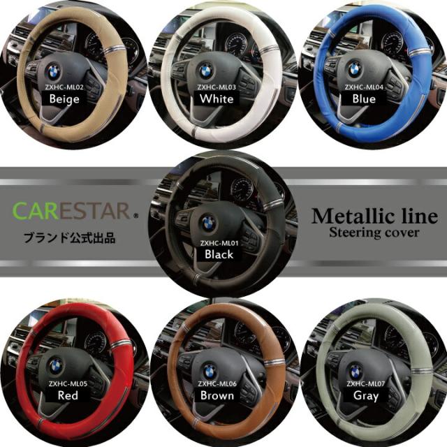 ハンドルカバー ブラック O型 D型 XS〜Sサイズ メタリックライン ステアリングカバー 軽自動車用 普通車用 汎用・専用ハンドルカバー 車 内装パーツ Z-style ケアスター