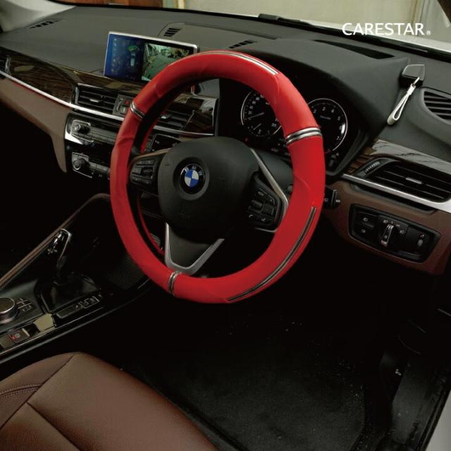 ハンドルカバー 軽自動車 普通車 兼用 Z-style メタリックライン レッド 赤 ステアリングカバー Z-style ケアスター