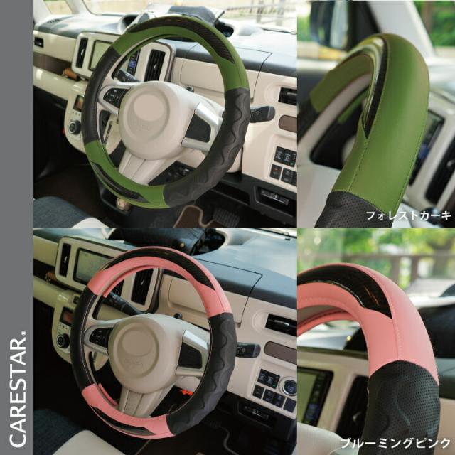 ハンドルカバー RCカーボン ベージュ ステアリングカバー Sサイズで軽自動車や普通車やミニバンなどに適合 Z-style ケアスター