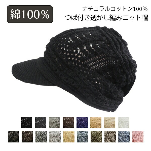 【医療用帽子 メンズ】 春夏 秋 男性 メール便送料無料 ニット帽 つば付き 大きめ 綿100% ニット キャップ 大きい 小さい おしゃれ サイズ S M 涼しい 暑がり 抗がん剤 蒸れない 帽子 女性 レディース 夏用 【ナチュラルコットン100%つば付き透かし編みニット帽】