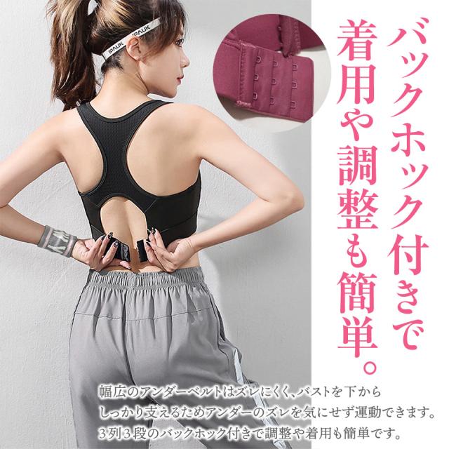 スポーツブラ 揺れない しっかりサポート 後ろホック 美バストキープ 吸汗速乾 メッシュ JM-162