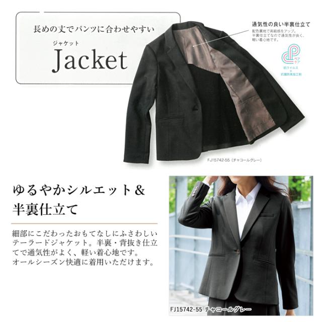 半裏仕立て/背抜き/センターベント/フロントホック/内ポケット/抗菌防臭加工/名札専用ミニポケット/印鑑ポケット/インク漏れ防止ポケット/両腰ポケット