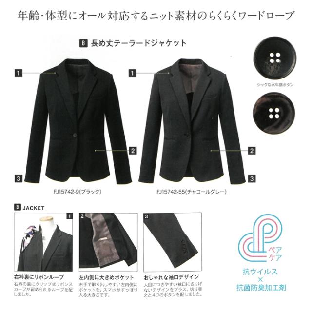 事務服 ジャケット レディース 制服 nuovo 秋冬 春 FOLK ニットテーラードジャケット【送料無料】黒 ブラック グレー 医療事務 受付 接客 冠婚葬祭 セレモニー クリニック オフィス スーツ 長袖 ゆったり 大きいサイズ 上着 おうちで洗える 抗菌 防臭