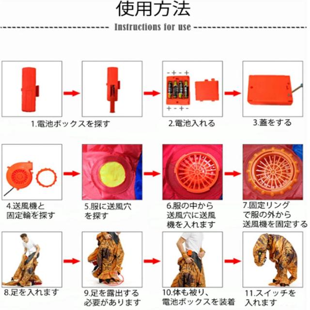 【セット内容】この恐竜の着ぐるみには、衣装、送風機、バッテリーボックス(バッテリーは含まれていません)が含まれています