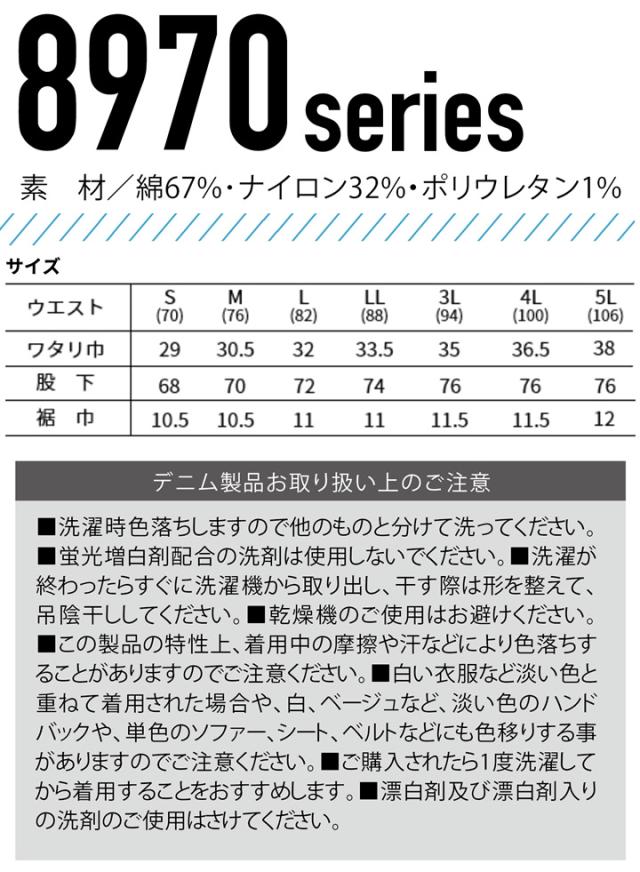 寅壱 デニムカーゴジョガーパンツ 8970-235 春夏 カーゴパンツ 接触冷感 ストレッチ 軽量 ズボン 8970シリーズ 作業服 作業着