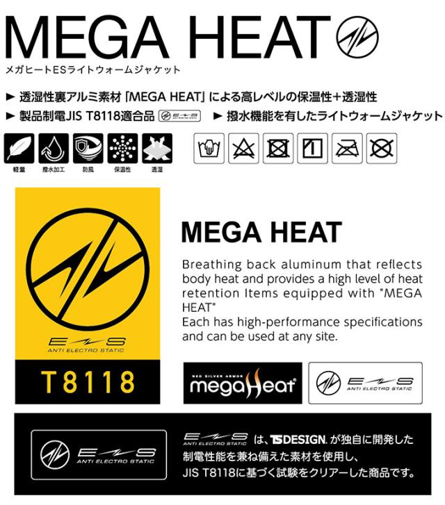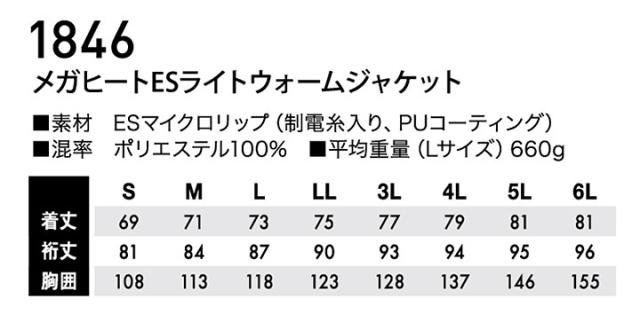 TSデザイン 作業服 防寒ジャンパー 防寒着 メガヒート ES ライトウォームジャケット TS-DESIGN 1846 保温性 透湿性 撥水 軽量 防風 防寒服 防寒着 作業服 作業着 ブルゾン ジャンバー TS-デザイン 藤和
