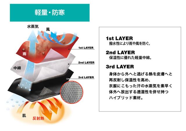 透湿性裏アルミ素材「MEGA HEAT」による高レベルの保温性+透湿性