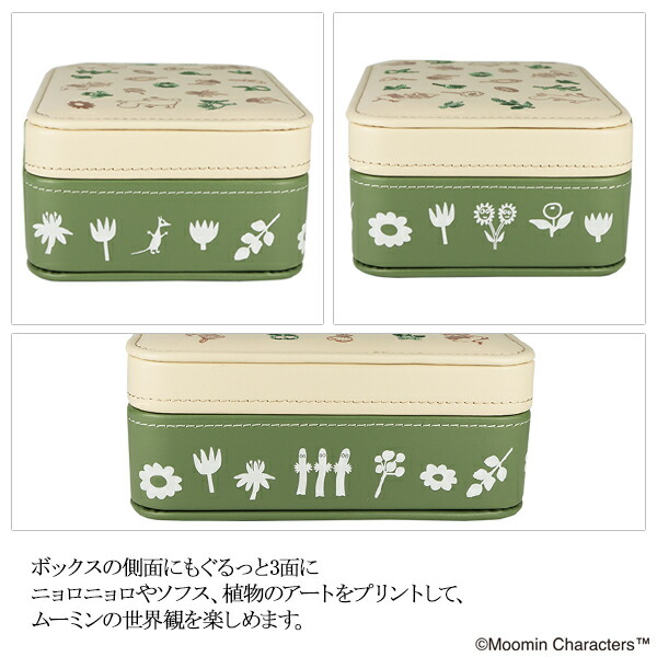 ボックスの側面にもぐるっと3面にニョロニョロやソフス、植物のアートをプリントして、蓋を開いた時もムーミンの世界観を楽しめます。