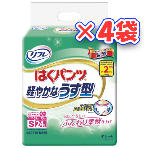 (リフレ)はくパンツ 軽やかなうす型 Sサイズ 1袋24枚 ×4袋(1ケース)/介護オムツ /大人用紙オムツ