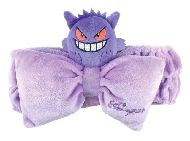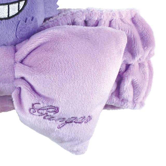 アニメ「ポケットモンスター」のキャラクター、ゲンガーのマスコットと大きなリボン付きの可愛いヘアバンドです。柔らかくて伸縮性があり、洗顔やメイク時の髪留めに便利です。バンド幅が約8cmの太めサイズで、髪をしっかりまとめることができます。