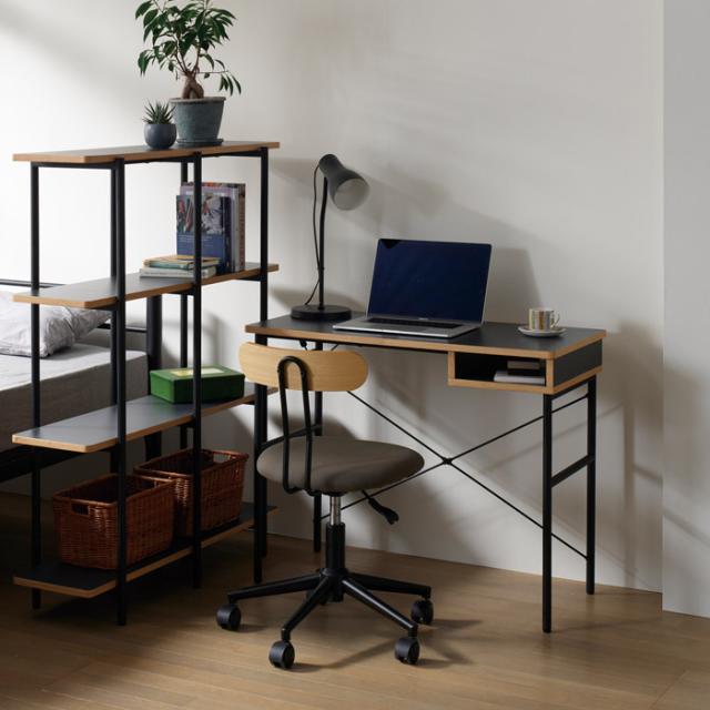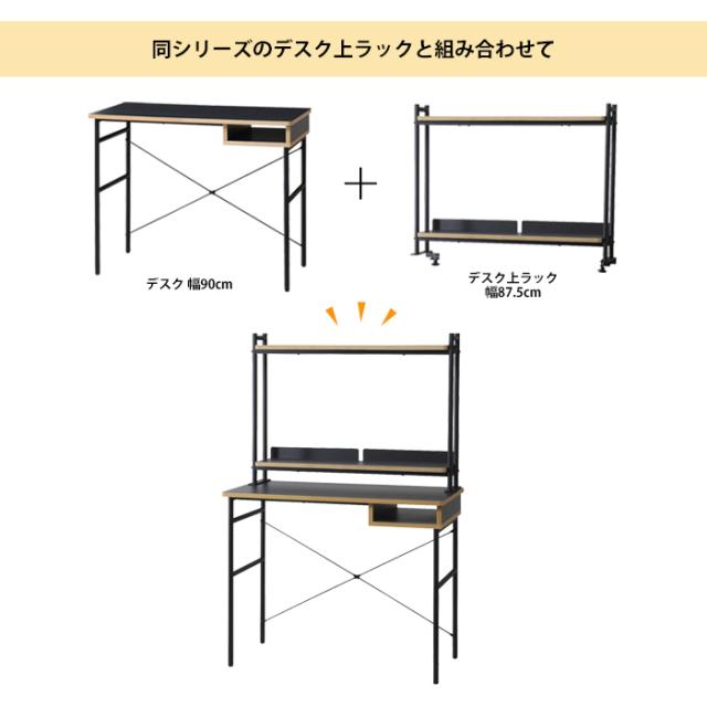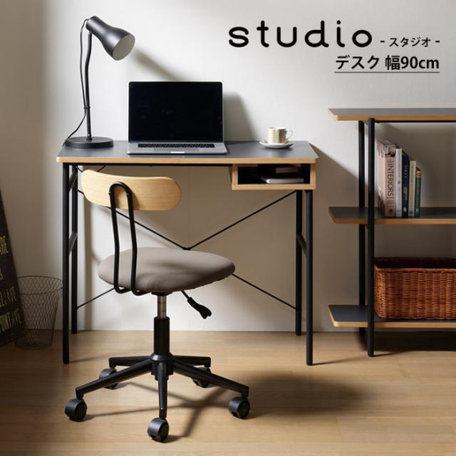 デスク おしゃれ 北欧 机 幅90 奥行45 高さ72 デスク 棚付き ブラックフレーム シンプル パソコンデスク studio スタジオ デスク 勉強 仕事 パソコン 作業 テレワーク 在宅勤務 リビング 一人暮らし 新生活