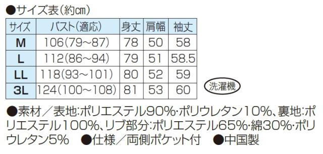 ●素材/表地:ポリエステル90%・ポリウレタン10%、裏地:ポリエステル100%、リブ部分:ポリエステル65%・綿30%・ポリウレタン5%