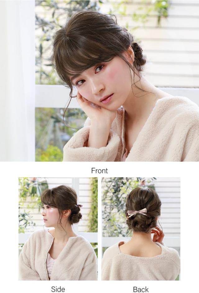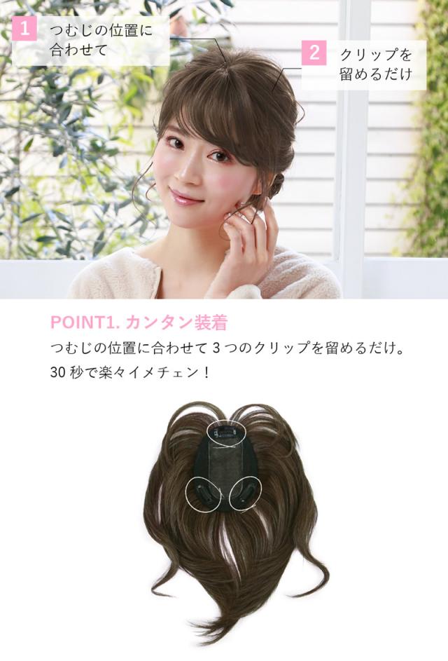 地毛とまとめてヘアアレンジもできる、万能前髪ウィッグです。