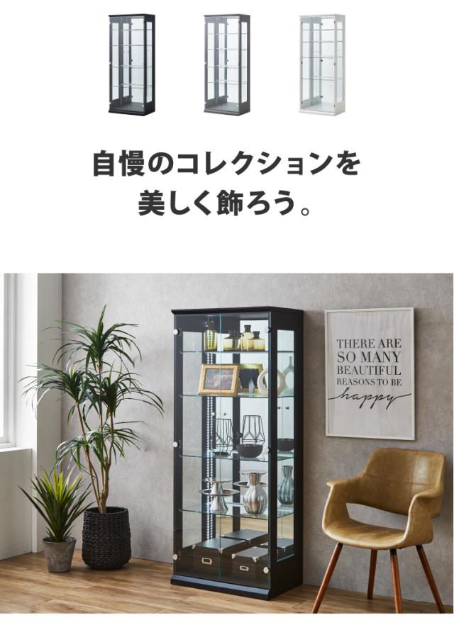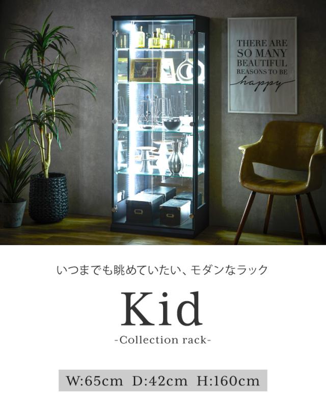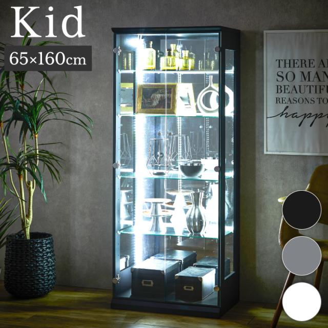 キッド65 コレクションラック 縦型ホワイトLEDライト付き コレクションケース 奥深 幅65 高さ160 奥行42 木製(代引不可)【送料無料】