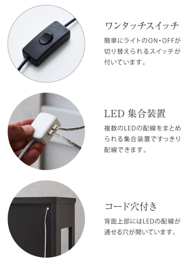 LEDライトでコレクションを美しく引き立たせます。