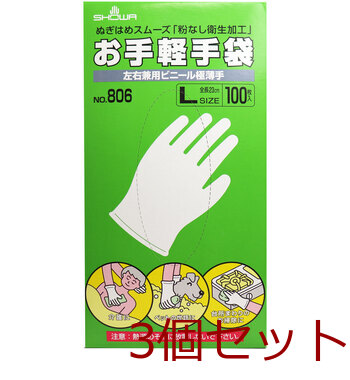 お手軽手袋 No.806 左右兼用ビニール極薄手 粉なし L