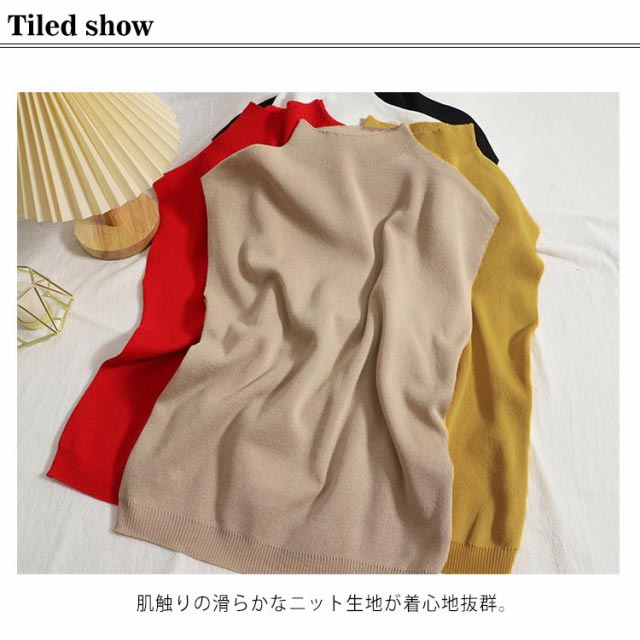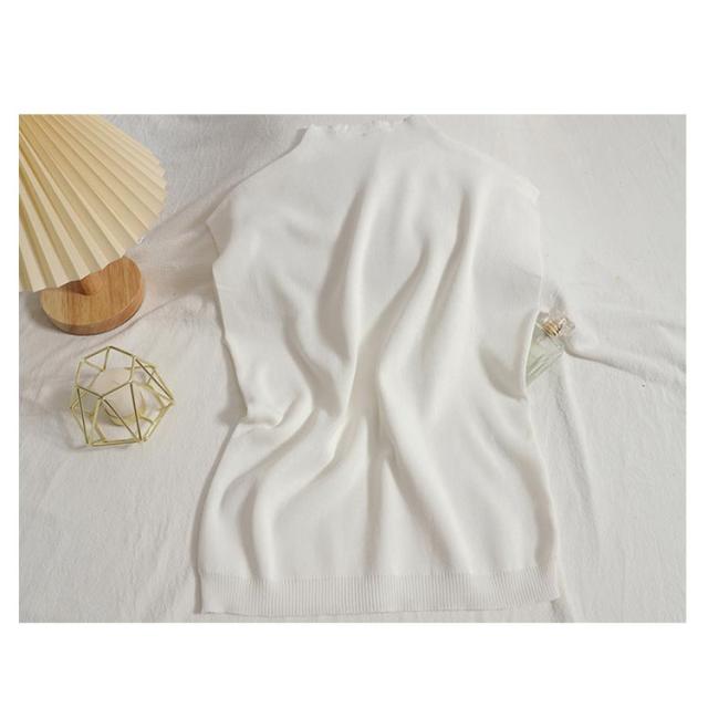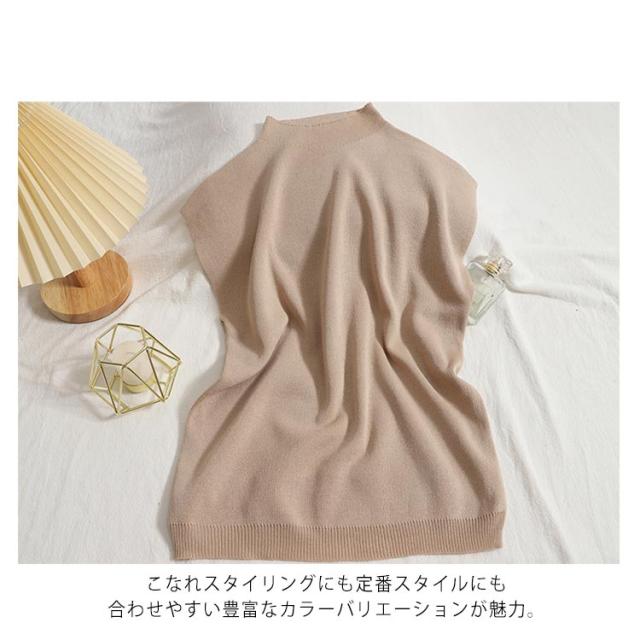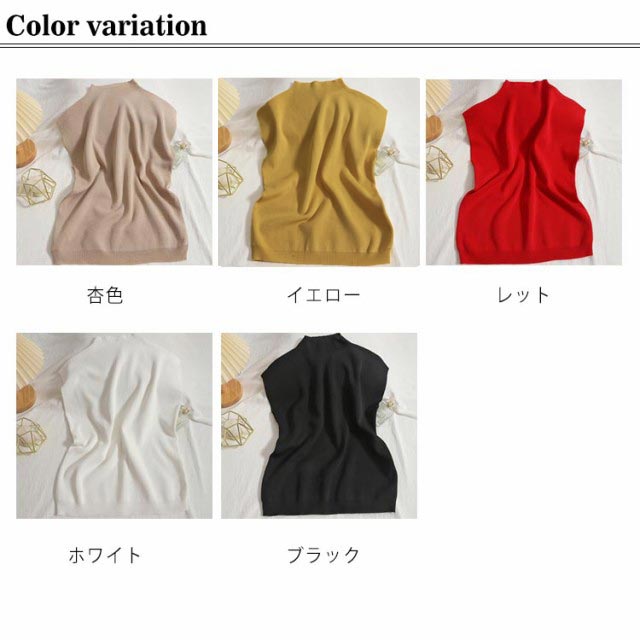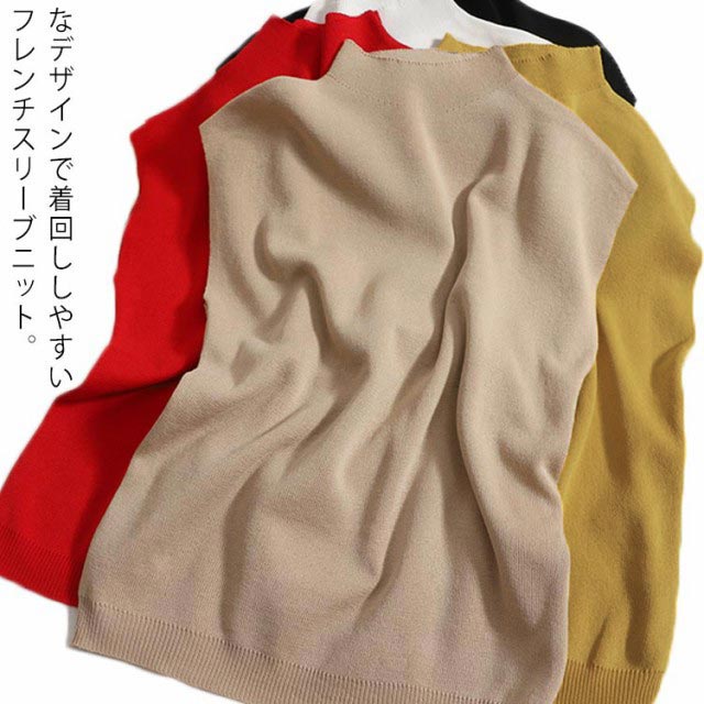 ボトルハイネックフレンチスリーブニット なデザイン フレンチスリーブニット トップス レディース カラーバリエーション シンプル