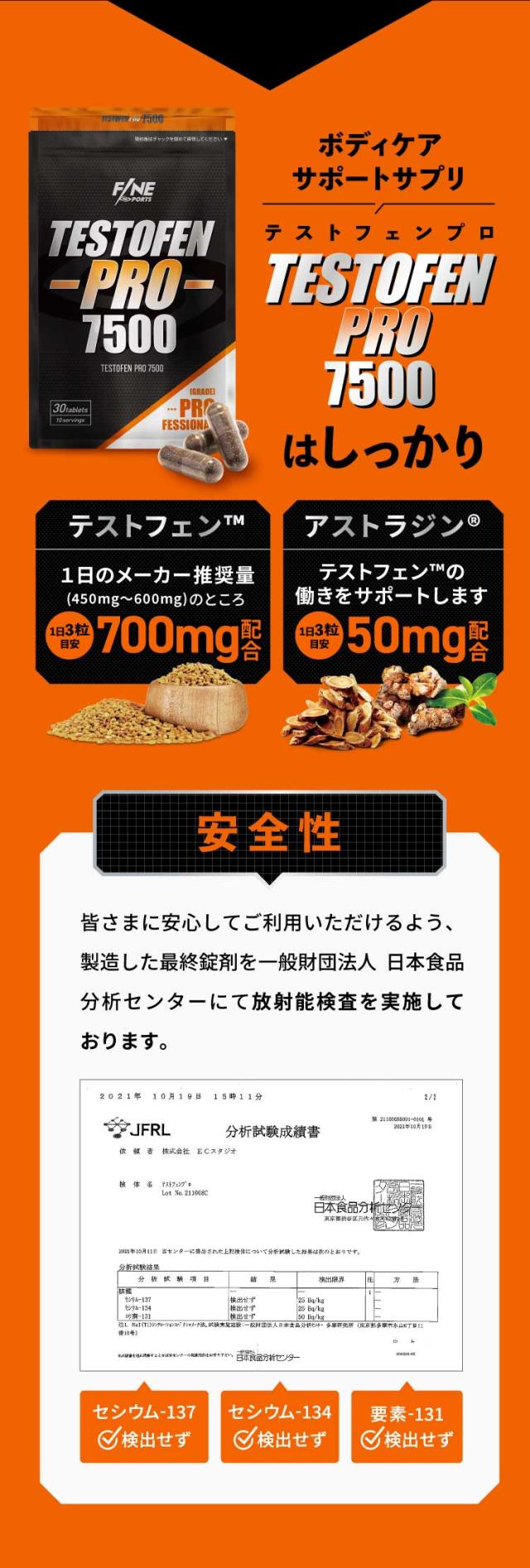 FINESPORTS テストフェンプロ7500 30粒10日分 国産 ボディメイク系サプリ テストフェン フェヌグリーク種子 アストラジン サプリメント ファインスポーツ トレーニング 筋トレ