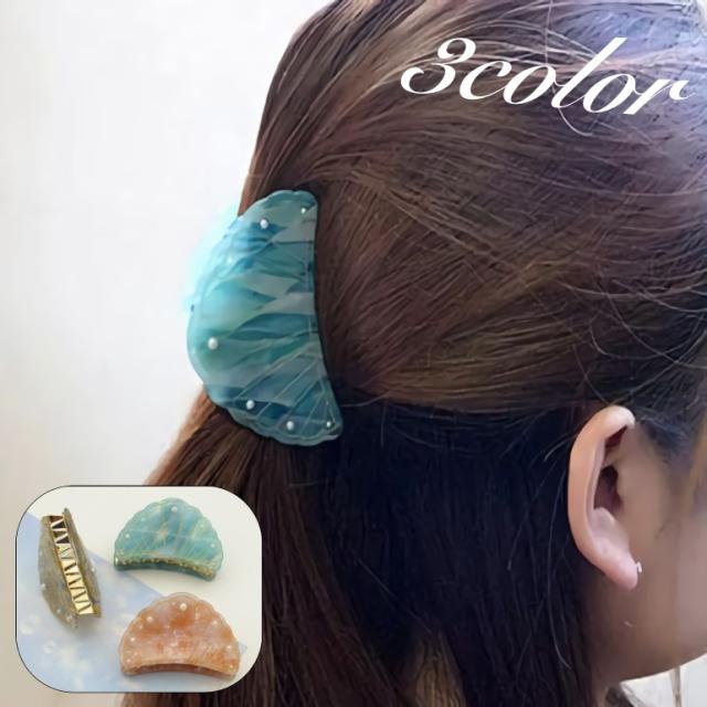 ヘアクリップ バンスクリップ ヘアアクセサリー レディース 女性 シェル風 フェイクパール パール調 ヘアアレンジ 髪飾り 髪留