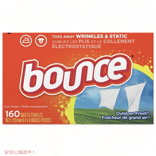 Bounce バウンス 乾燥機用 柔軟剤シート ドライヤーシート [アウトドアフレッシュの香り] 160枚入り1箱 Outdoor Fresh Scented Fabric Softener Dryer Sheets