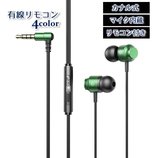 有線イヤホン カナル式 密封型 リモコン付き 両耳用 直線プラグ 115cm シンプル おしゃれ カジュアル 使いやすい スマホ