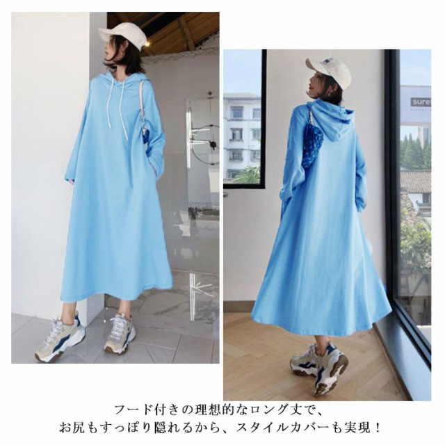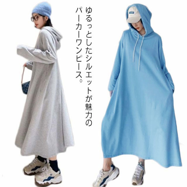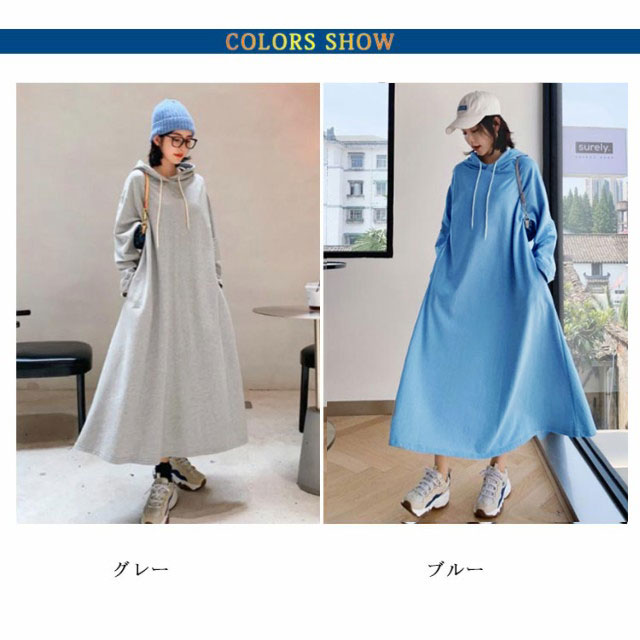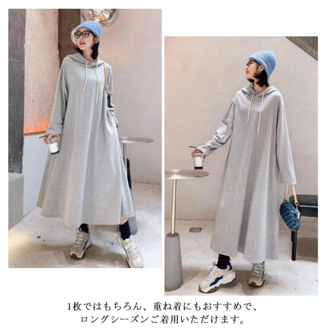 送料無料 パーカーワンピース ロングワンピース ロングパーカー フレアワンピース レディース プルオーバー マキシワンピース ロングワンピ 長袖 体型カバー 無地トレーナー スウェット パーカーワンピ 大きいサイズ 春 秋