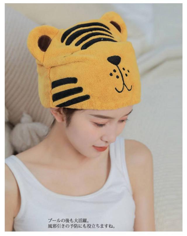 キッズキャップ ヘアドライキャップ 子供用 お風呂上がり キャップ 吸水キャップ ドライキャップ ネコ パンダ 虎 ヘアキャップ キッズ 海 プール お風呂 女の子 プレゼント ギフト