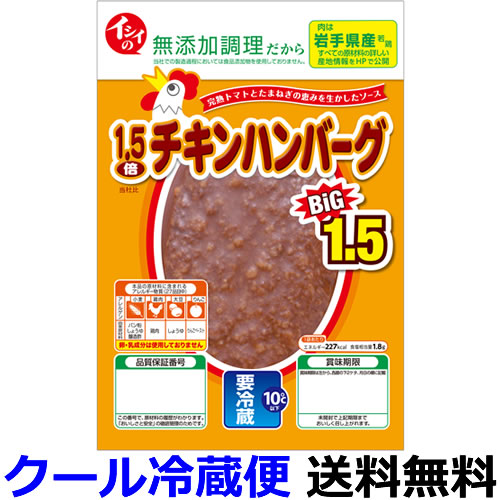 イシイ 1.5倍チキンハンバーグ 135g(固形量90g)X100袋【送料無料】【冷蔵商品】石井食品 育ち盛りのお子様の昼食やお夜食にもどうぞ。乳成分・卵は使用しておりません。※画像とパッケージが異なる場合がございます