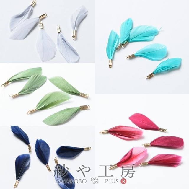 チャーム フェザー 金具付き 本物の羽 【選べる7色】 30mm 5個 アクセサリー パーツ カン付き 天然素材 アクセサリーチャーム 約3cm アクセサリーパーツ メタルパーツ 金属パーツ ハンドメイド資材 ウィングチャーム さや工房 問屋 手作り