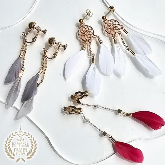 本物の羽に金具を取り付けた金具付きフェザーです。