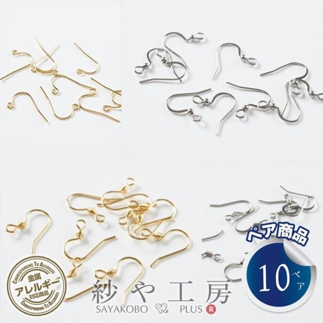 ピアスパーツ 316L ステンレス 金属アレルギー対応 フックピアス カン付 【選べる6種】 10ペア サージカルステンレス アクセサリー 問屋