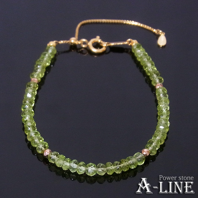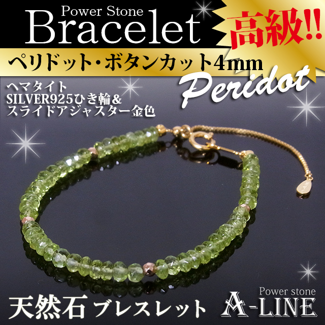 パワーストーン 高級ワイヤーブレスレット ペリドット・ボタンカット4mm ppw288