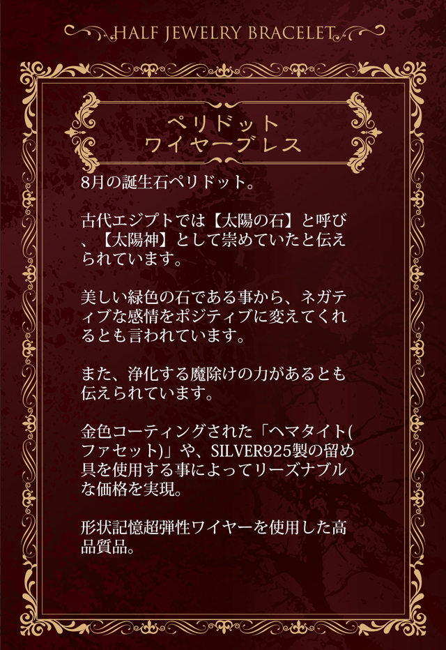 8月の誕生石で高級石のペリドット6mmと3mmを使用したワイヤーブレス!