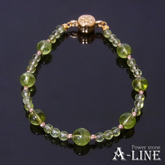 パワーストーン 高級ワイヤーブレスレット ペリドット6mm&3mm ppw290